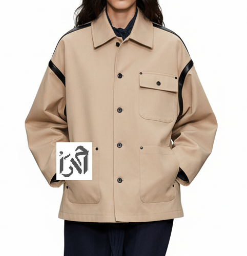 کت زنانه شتری با یقه چرم زرشکیناموجود